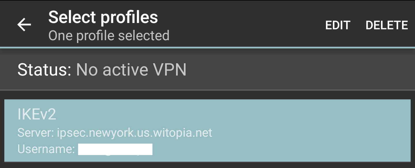 - Server Identity = ipsec.witopia.net (must be all lowercase)